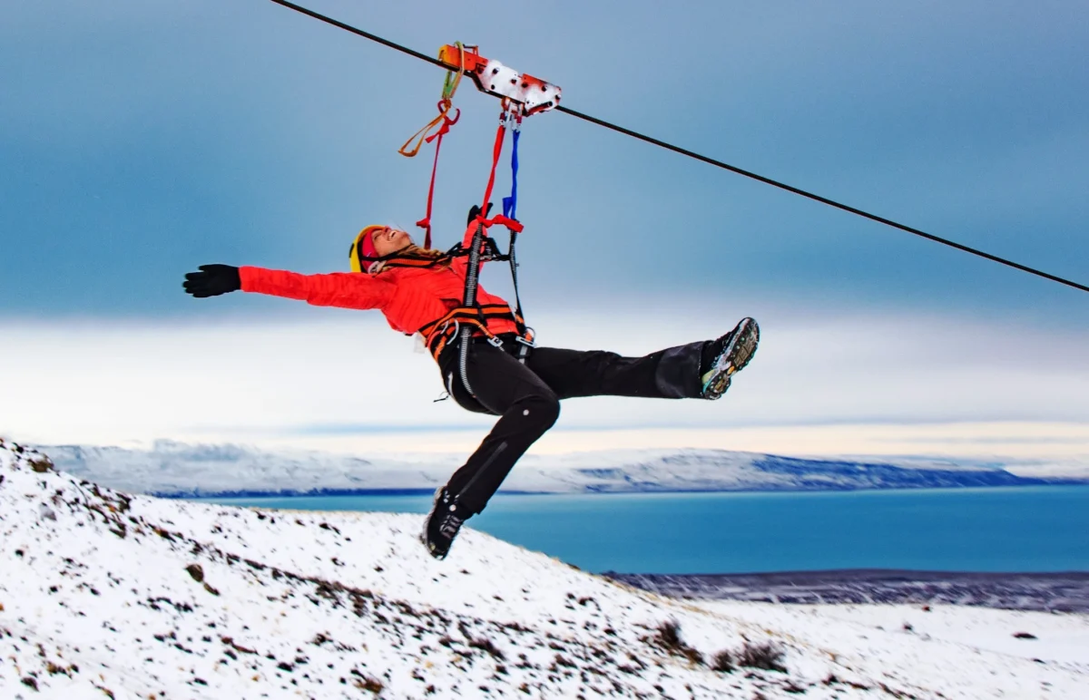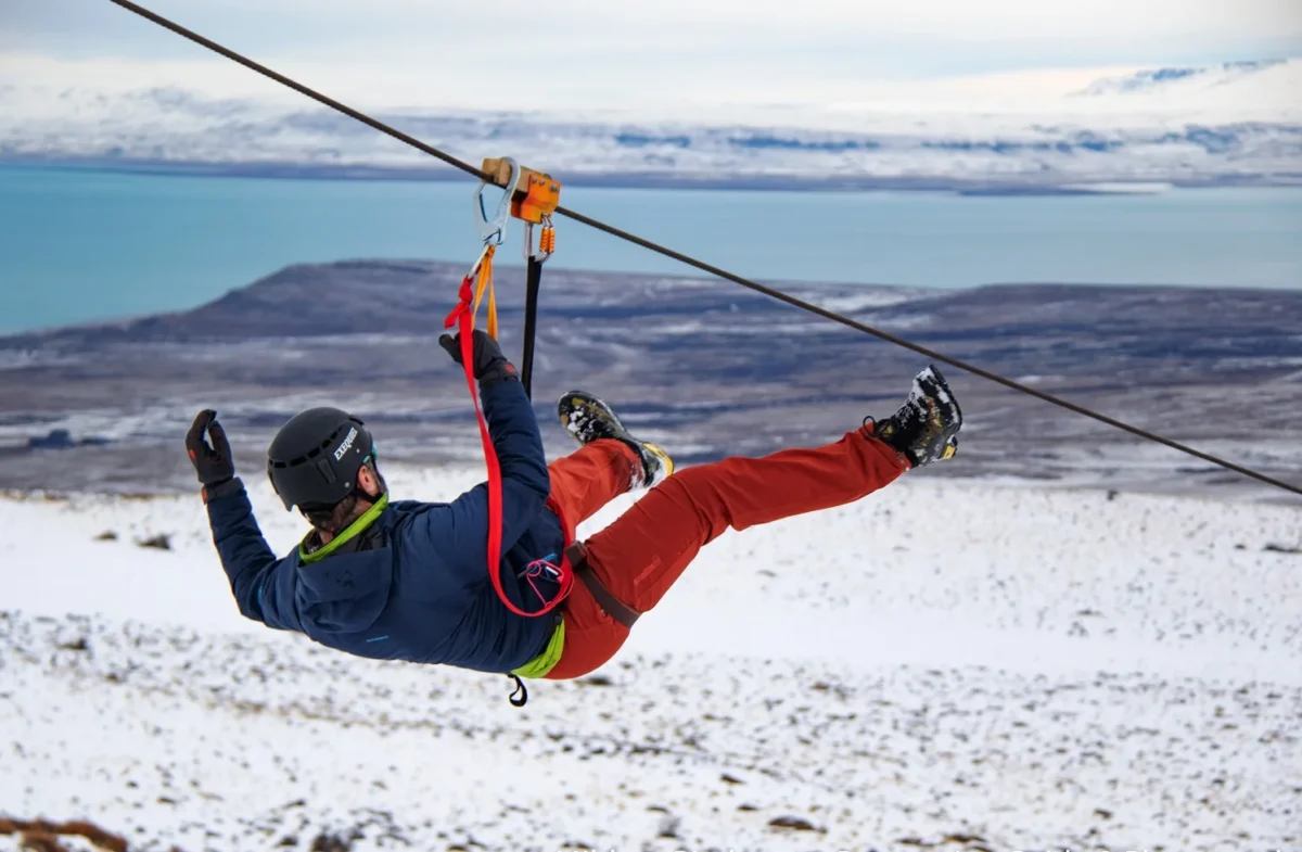 Atención: en época invernal cuando parte del recorrido en 4×4 se torna inaccesible debido a la gran cantidad de nieve acumulada (o barro en época de deshielo), el ascenso se hace hasta unos 800 metros hasta llegar al Balcón “Este” desde el cual se pueden apreciar las magníficas vistas panorámicas de El Calafate, Lago Argentino y la Cordillera de los Andes. El descenso por tirolesa se realiza por la tercera y cuarta línea, ¡las más espectaculares del circuito!