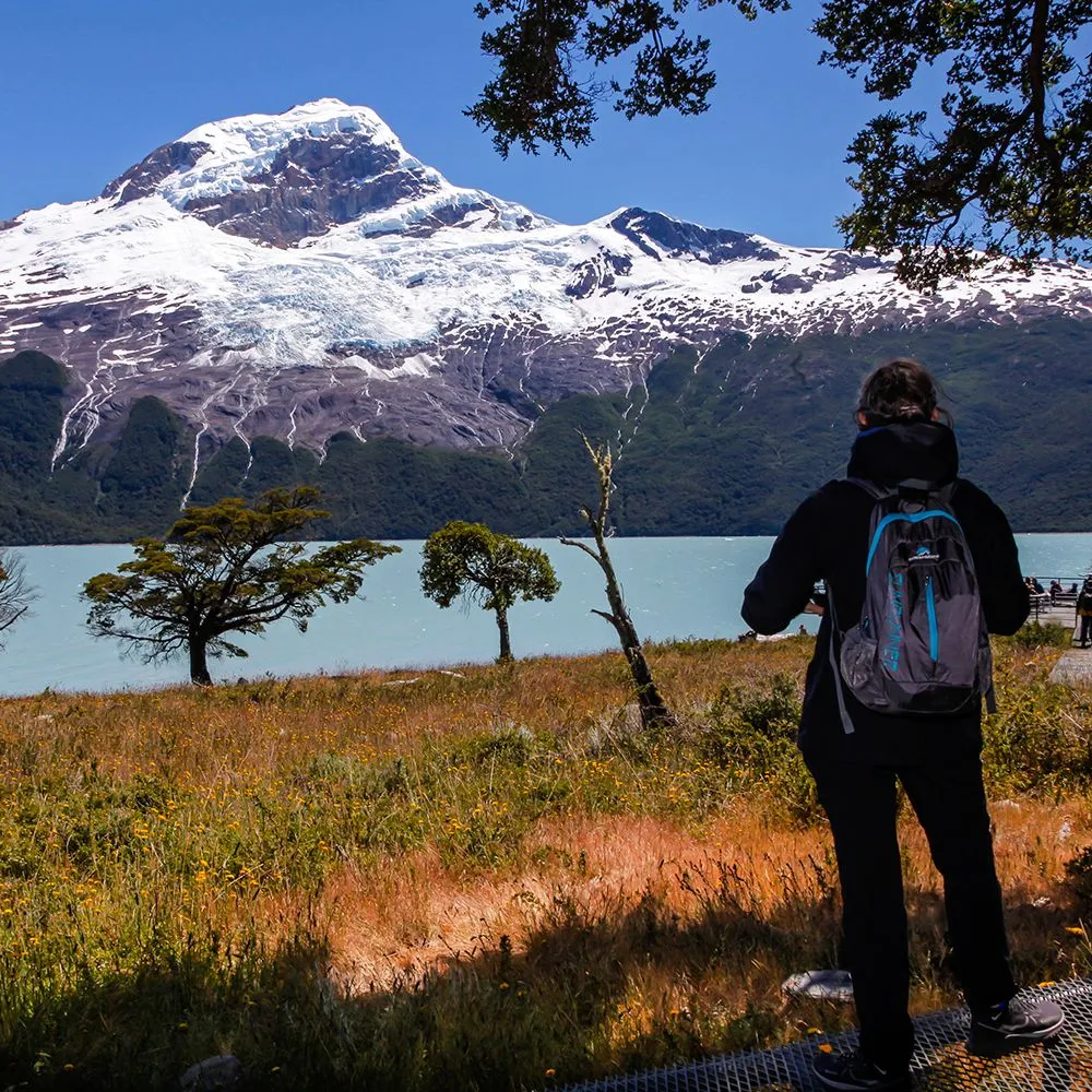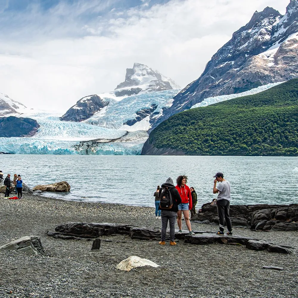 Base Spegazzini: Descenso en la base frente al Glaciar Spegazzini, donde nuestro Refugio Spegazzini ofrece servicios completos y vistas panorámicas.